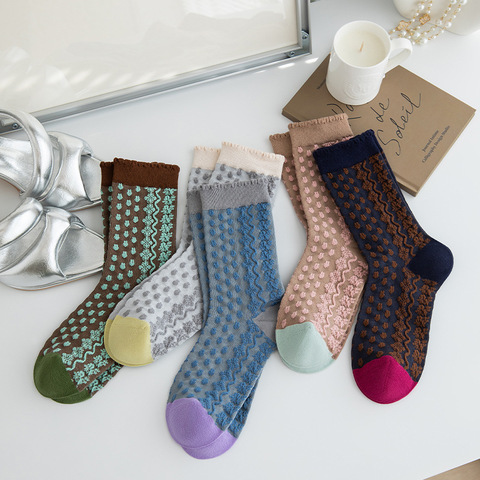 सर्दियों के लिए 2025 विंटेज फूलों की महिलाओं के मोजे ने शरद ऋतु सर्दियों के लिए चालक दल की लंबाई आकस्मिक लंबी मोजे