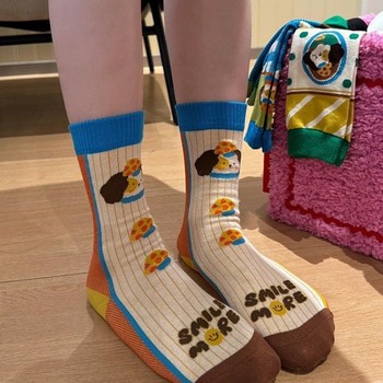 かわいい子犬女性秋クルーソックス流行のインズスタイルインターネット有名人デザインカラーブロック日本の漫画スタイルの女の子