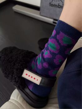 2025年秋冬新クルー丈ニットソックス動物パターン汗吸収性の小さな猫レギュラートレンディカレッジ
