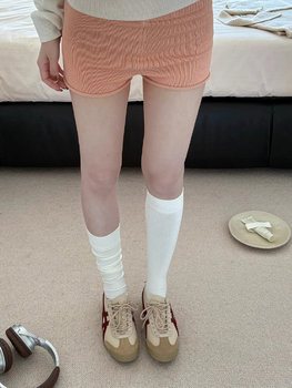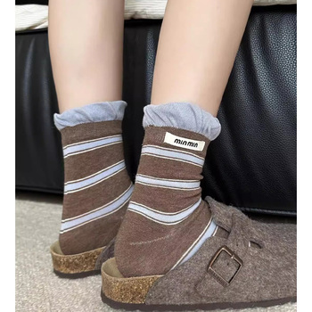 グレーナチュラルウエスト圧力ふくらはぎ靴下女性秋冬カジュアルシンプルインズスタイルソリッドカラーニットスローチペアローファー