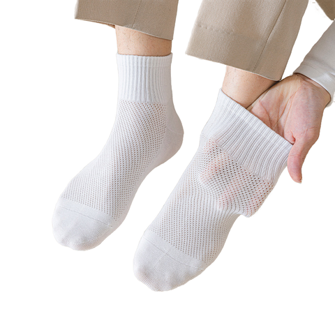 Tripulação Casual masculino branco algodão meias respirável anti-odor anti-bacteriano suor-absorvente desossado malha verão cor sólida