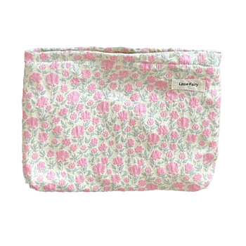 Floral Eco Moda Poliéster Maquiagem Saco Zipper Soft Handle para Mulheres Portátil Grande Capacidade Viagem Bolsa Skincare